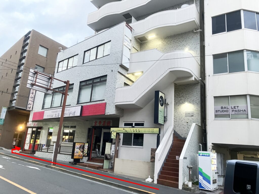 ※ ビルの入り口は中華料理店の角を右に曲がったところにあります。